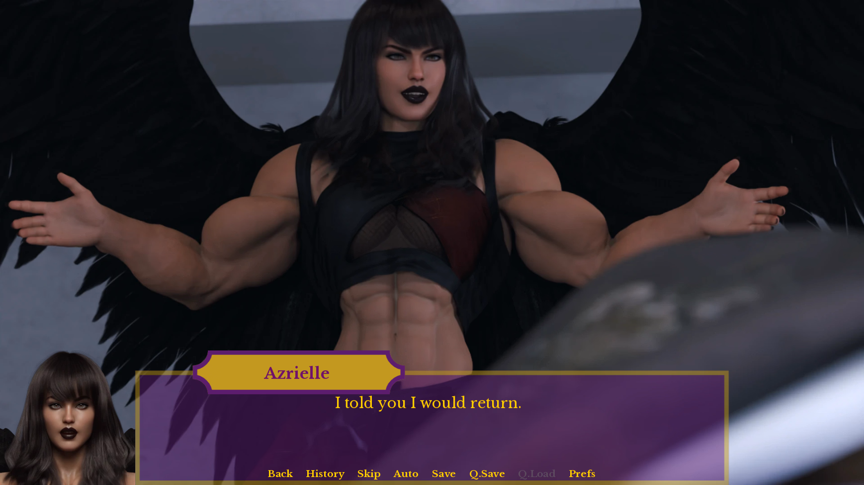 Aurelia is impossible to ignore: towering at 6’9″, her physique is a sculpted force of nature, broad-shouldered, very muscular, and powerfully built in a way that commands space and silences conversations. She moves with effortless precision and authority, her intellect razor-sharp, her presence radiating quiet, unassailable dominance. Wherever Aurelia goes, the spotlight shifts, not because she demands it, but because no one else can hold it in her shadow. Calista, for the first time, feels small, outmatched, and utterly ordinary next to this woman who surpasses her in every dimension that once defined her worth. The realization shatters Calista’s confidence. Her carefully maintained image begins to crack, then collapse entirely. The beauty she relied on fades; her body softens under layers of neglect and despair. Friends drift away, opportunities vanish, and the perfect glass box she once lived in lies in ruins. At her absolute lowest, broken, invisible, and hollow, she encounters Azrielle, a demon who offers to restore her former glory… and grant her even greater abundance, for a price she has yet to fully understand.